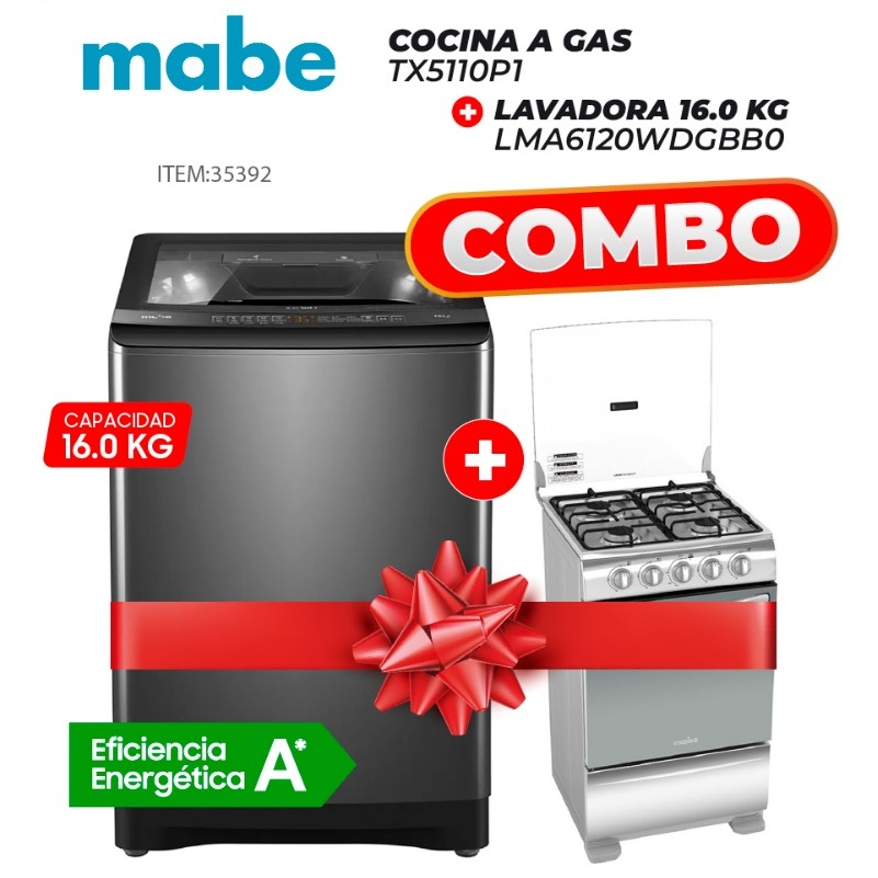 SÚPER COMBO - COCINA A GAS MABE [TX5110P1] + LAVADORA MABE 16.0 KG [LMA6120WDGBB0]